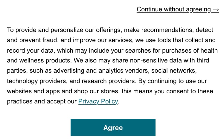 | Add a Continue without agreeing link |