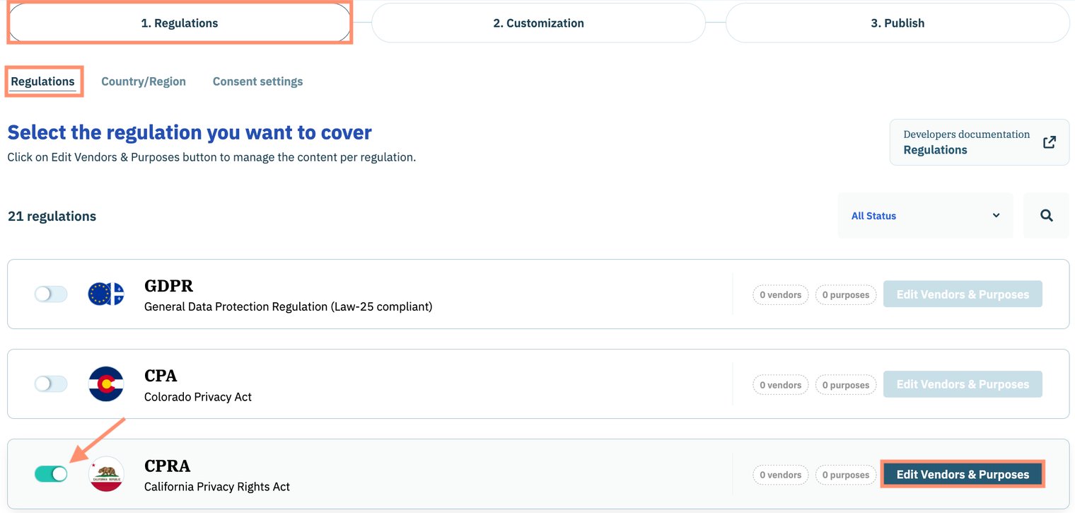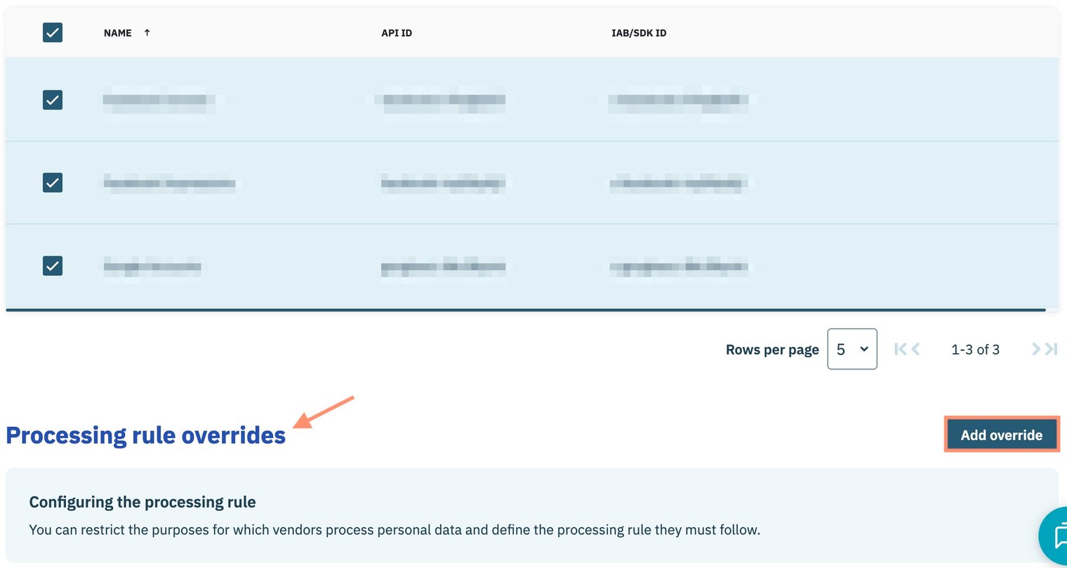 - Select option for Require consent for selected vendors