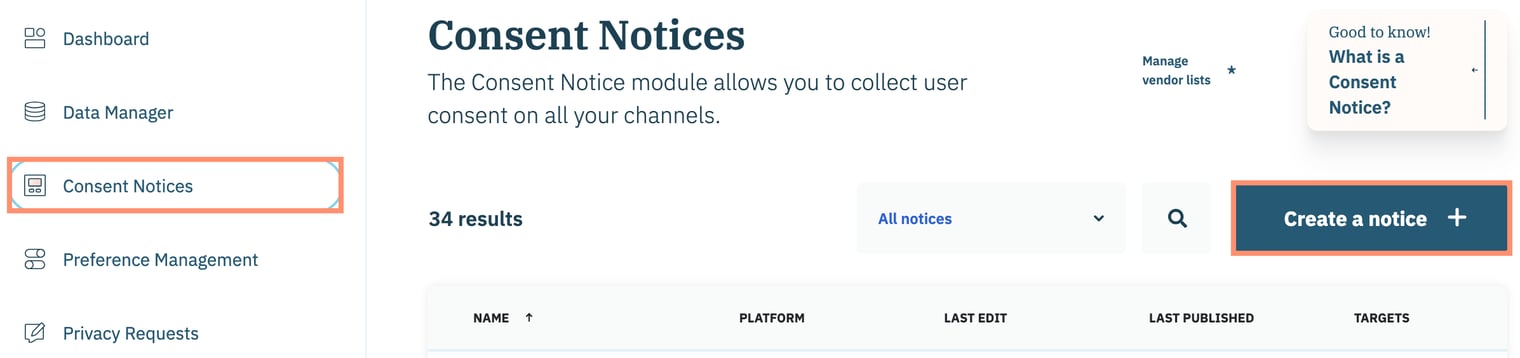 Configure consent notice