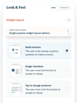 - Choose on which type of selection input your end-users express their choice in a Single Purpose Widget:
