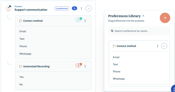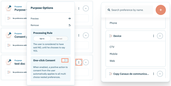 Note: Toggling a one-click consent purpose will reset any preference value selections.