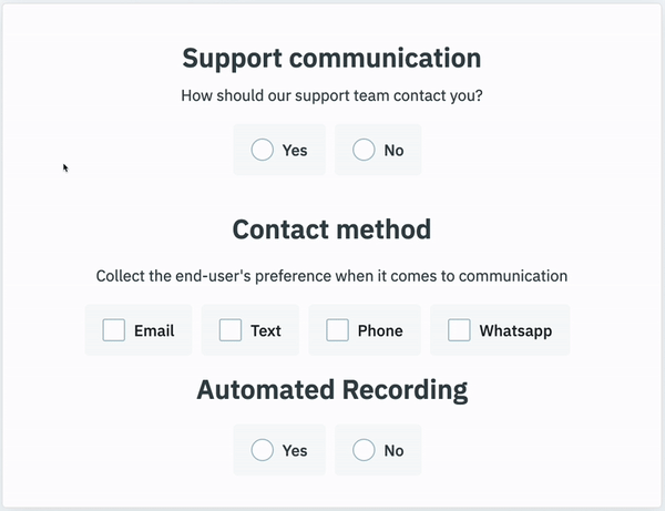 | Multi purpose widget | Once the purpose is consented by the end-user the preselected preference values will be visible in the preferences widget and saved when the end-user submits their preference via the Save button. |