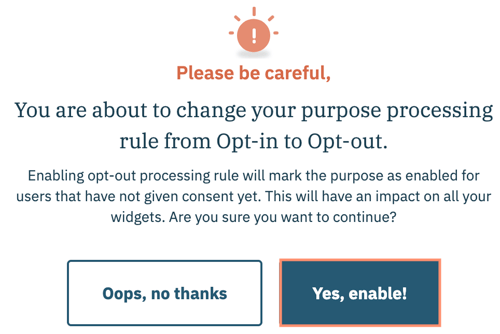 If required, confirm the decision to change the processing rule in the subsequent modal and click Yes, enable!
