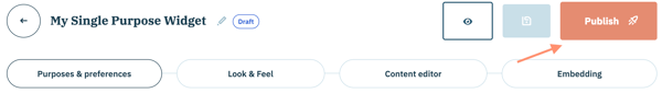 In order to reflect a change of processing rule for a purpose on a published preferences widget your organization will need to republish the preferences widget.